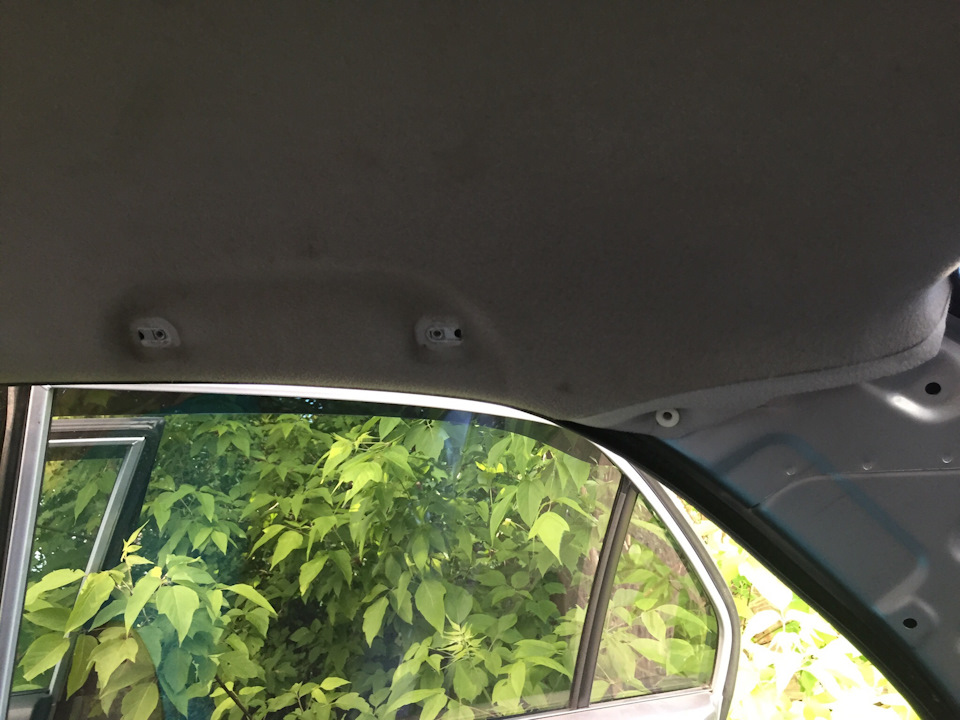 - Аккуратно удалите все предметы с потолка автомобиля, такие как ручки, люстры и зеркала заднего вида.